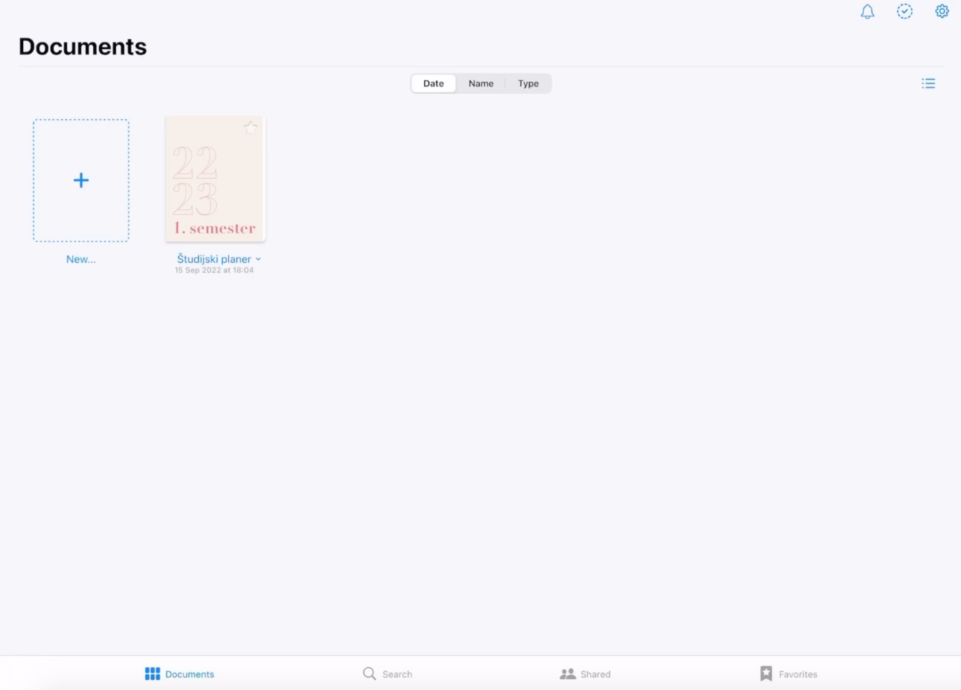 6. Odpri GoodNotes in klikni na + (New) da dodaš nov dokument. Pokazalo se ti bo več možnosti, glede na to od kje želiš uvoziti dokument, izberi opcijo “Import”, ki te bo vodila v tvoje datoteke. Tam odpri mapo, ki vsebuje planer in klikni na pdf-dokument.
