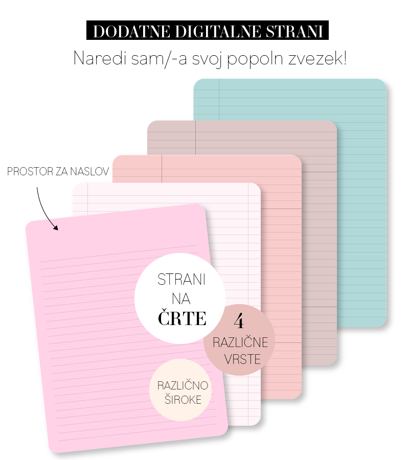 • 162 različnih BREZPLAČNIH dodatnih strani za oblikovanje novih zvezkov.